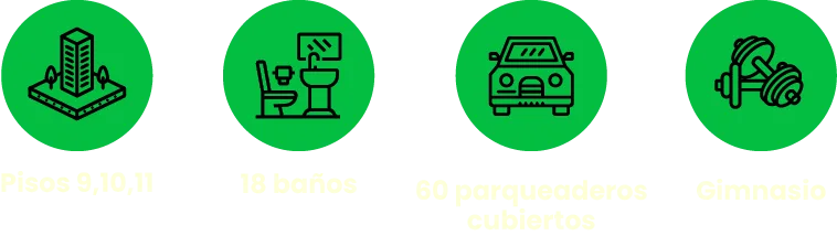 para empresas del sector corporativo, bancario, salud, educación, gobierno, tecnología, inmobiliario, entre otras. La propiedad cuenta con licencias independientes para los parqueaderos y una licencia para las oficinas.